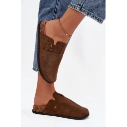 Dámské pantofle a chodaki na platformě s přezkou – hnědé Selio