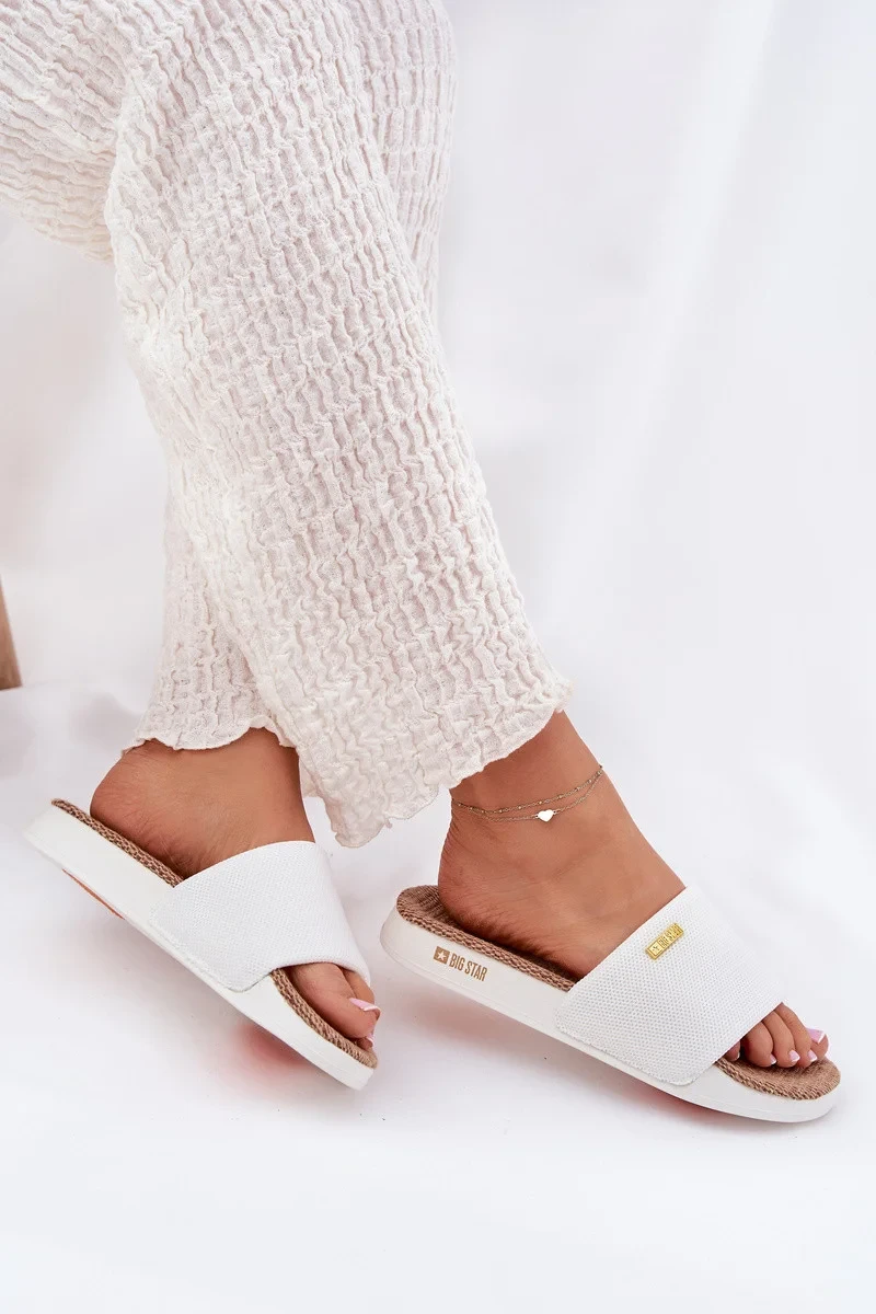 Dámské pantofle Big Star v univerzální bílé barvě jsou ideální volbou pro léto, dovolenou i domácí pohodlí. Minimalistický design s logem značky na nártu působí čistě a moderně, zatímco lehká konstrukce a ergonomická stélka zajistí příjemné nošení během celého dne.