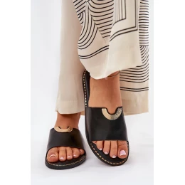 Dámské pantofle na plochém podpatku jsou ideální volbou na letní dny. Vyrobeny z ekologické kůže. Klasický střih byl obohacen o dekorativní detaily, které jim dodávají elegantní charakter. Skvělé jak na každodenní nošení, tak na letní procházky. Výborně se hodí k šatům, sukním a kalhotám, přidávají stylový akcent každému outfitu. Při výběru velikosti se řiďte tabulkou velikostí.