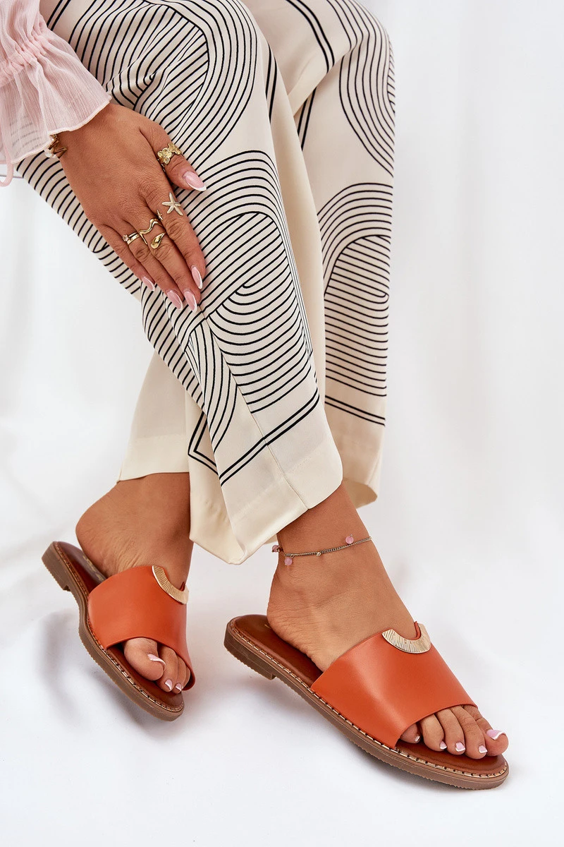 Dámské Pantofle Eko Kožené S Ozdobnými Oranžové model 21689334 - Boto