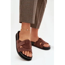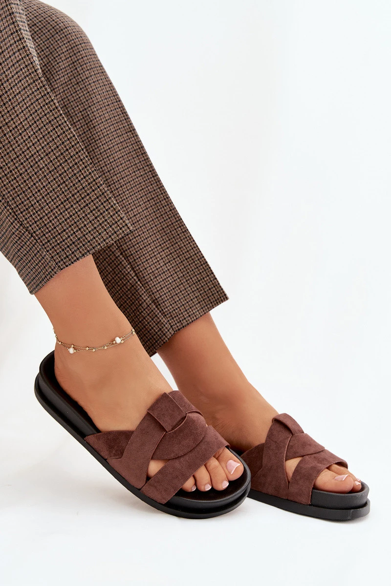 Dámské pantofle Eko semiš s pásky tmavě hnědé model 21918929 - Boto