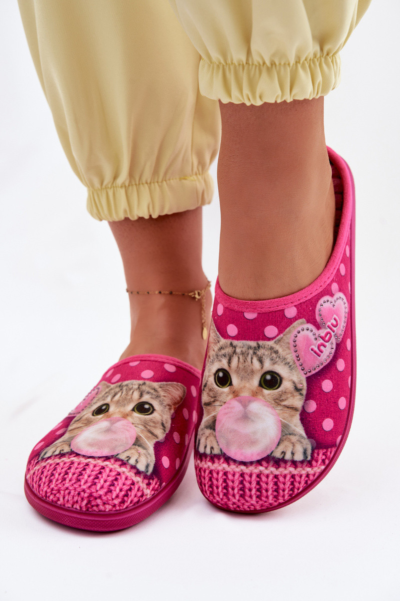 Dámské pantofle Inblu jsou pohodlný model ideální pro každodenní nošení doma. Boty mají zakryté špičky, které zajišťují pohodlí a teplo. Model má měkkou vložku a elastickou podrážku, díky čemuž jsou pantofle velmi pohodlné při chůzi. Roztomilý motiv s kočkou a bublinkovým gumovým balonem dodává celku originální charakter. Jsou to pohodlné a praktické pantofle, které se skvěle hodí na domácí relaxaci. Při výběru velikosti se řiďte tabulkou velikostí.
