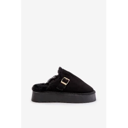 Stylové dámské pantofle na silné podrážce jsou ideální volbou na chladnější dny. Zateplené měkkým kožíškem, poskytují výjimečné pohodlí a teplo. Ozdobené páskem se zlatou sponou. Ideální na nošení doma a rychlé vyběhnutí ven. Při výběru velikosti se řiďte tabulkou velikostí.