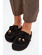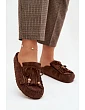 Dámské pantofle typu mule vyrobené z eko semiše jsou stylovým a pohodlným návrhem na každý den. Model na platformě zajišťuje stabilitu a komfort při nošení. Přední část pantoflí zdobí dekorativní třásně a zavázání ve tvaru mašle s korálky, které dodávají celku ženský a originální charakter. Široké, zaoblené špičky zvyšují volnost pro nohu a tvarovaná vložka zvyšuje komfort i při delším nošení. Pantofle jsou ideální pro letní stylizace, spojující pohodlí s módním vzhledem. Při výběru velikosti se řiďte tabulkou velikostí.