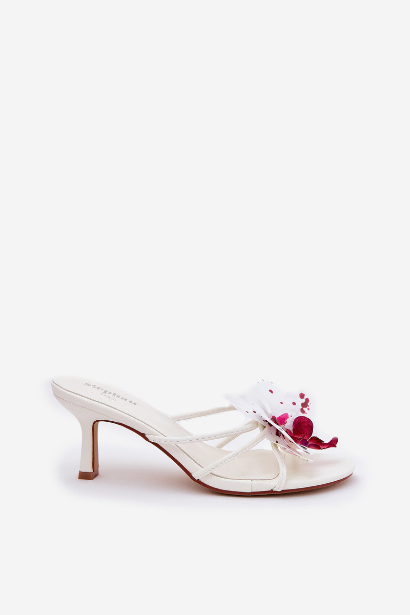 Dámské Pantofle Na Jehlách S Umělou Květinou Bílé Reyi