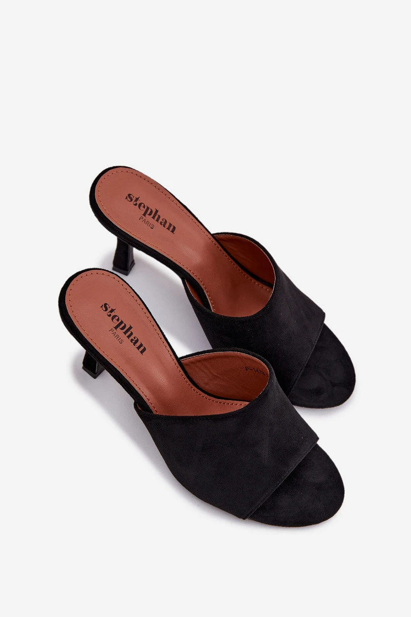 Dámské pantofle Isolia v černém provedení z eko semiše představují elegantní a smyslnou volbu pro slavnostní i večerní outfity. Jehlový podpatek dodává obuvi ženský charakter a opticky prodlužuje siluetu, zatímco jemný semišový povrch působí luxusně a sofistikovaně. Nadčasová černá barva zaručuje univerzální využití.