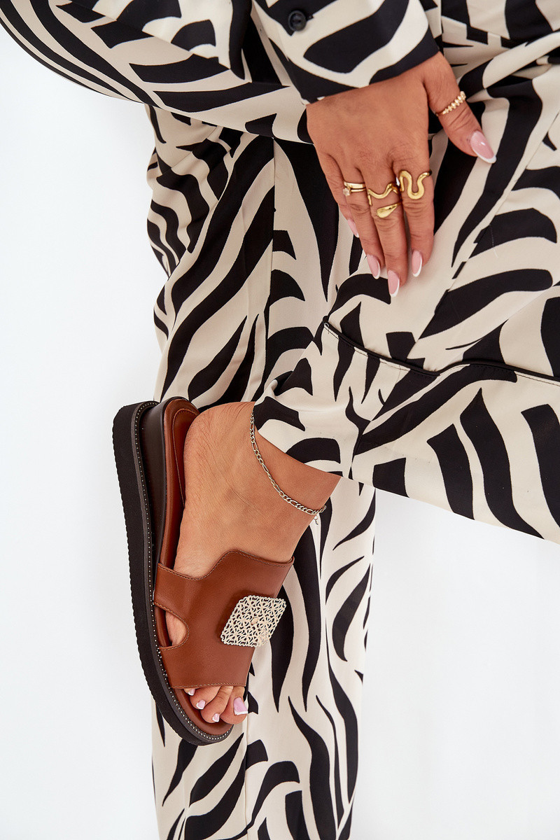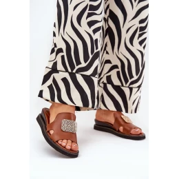 Dámské Pantofle Na Klínu Eko Kůže S Ozdobou Hnědé Sarela