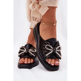 Dámské Pantofle Na Klínu S Mašlí Černé Moonzella