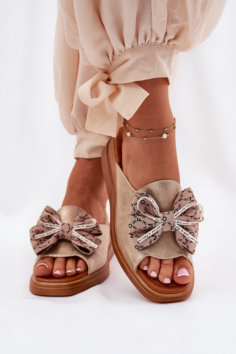 Dámské Pantofle Na Klínu S Mašlí Zlaté model 21692807 - Boto