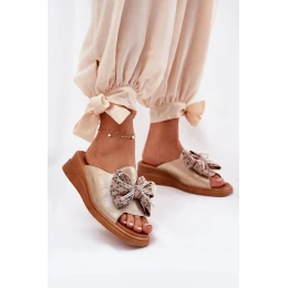 Dámské Pantofle Na Klínu S Mašlí Zlaté Moonzella