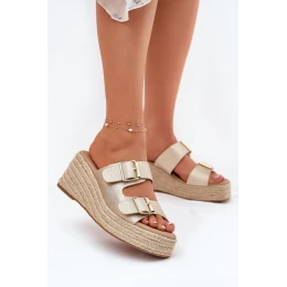 Dámské Pantofle Na Klínu S Pletením A Přezkami Zlaté model 21697344 - Boto
