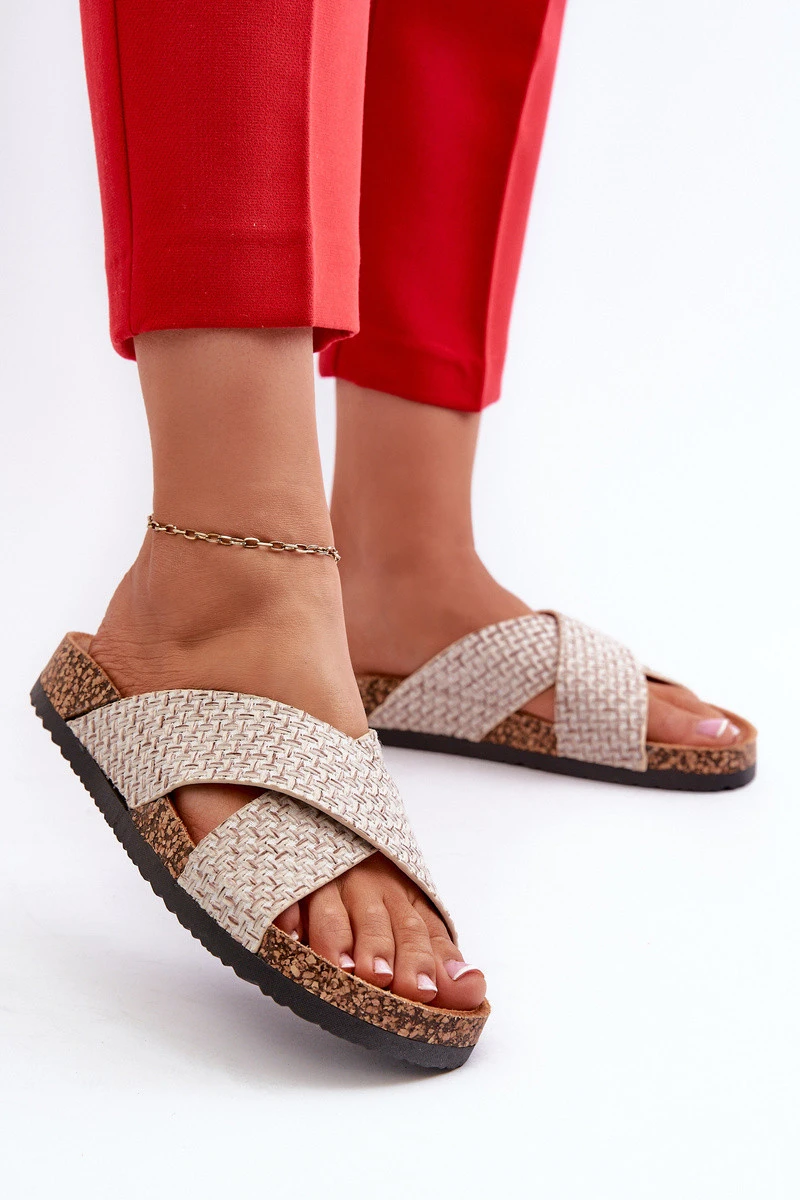 Dámské pantofle na korkové platformě kombinují styl a pohodlí. Mají dva propletené pásky na přední straně, které dodávají originalitu a kouzlo. Platforma zajišťuje stabilitu a lehkost při nošení, ideální pro letní dny. Tyto pantofle nejsou jen módním doplňkem k letním outfitům, ale také praktickou obuví pro každodenní nošení.