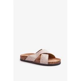 Dámské pantofle na korkové platformě kombinují styl a pohodlí. Mají dva propletené pásky na přední straně, které dodávají originalitu a kouzlo. Platforma zajišťuje stabilitu a lehkost při nošení, ideální pro letní dny. Tyto pantofle nejsou jen módním doplňkem k letním outfitům, ale také praktickou obuví pro každodenní nošení.