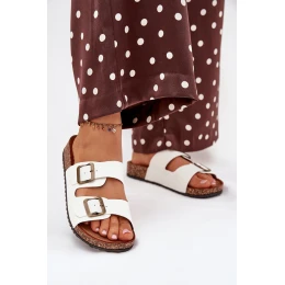 Dámské Pantofle Na Korkové Platformě S Přezkami Bílé Vesina