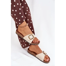 Dámské pantofle na korkové platformě s přezkou – béžové Vianara