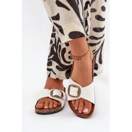 Dámské pantofle na korkové platformě s přezkou – bílé