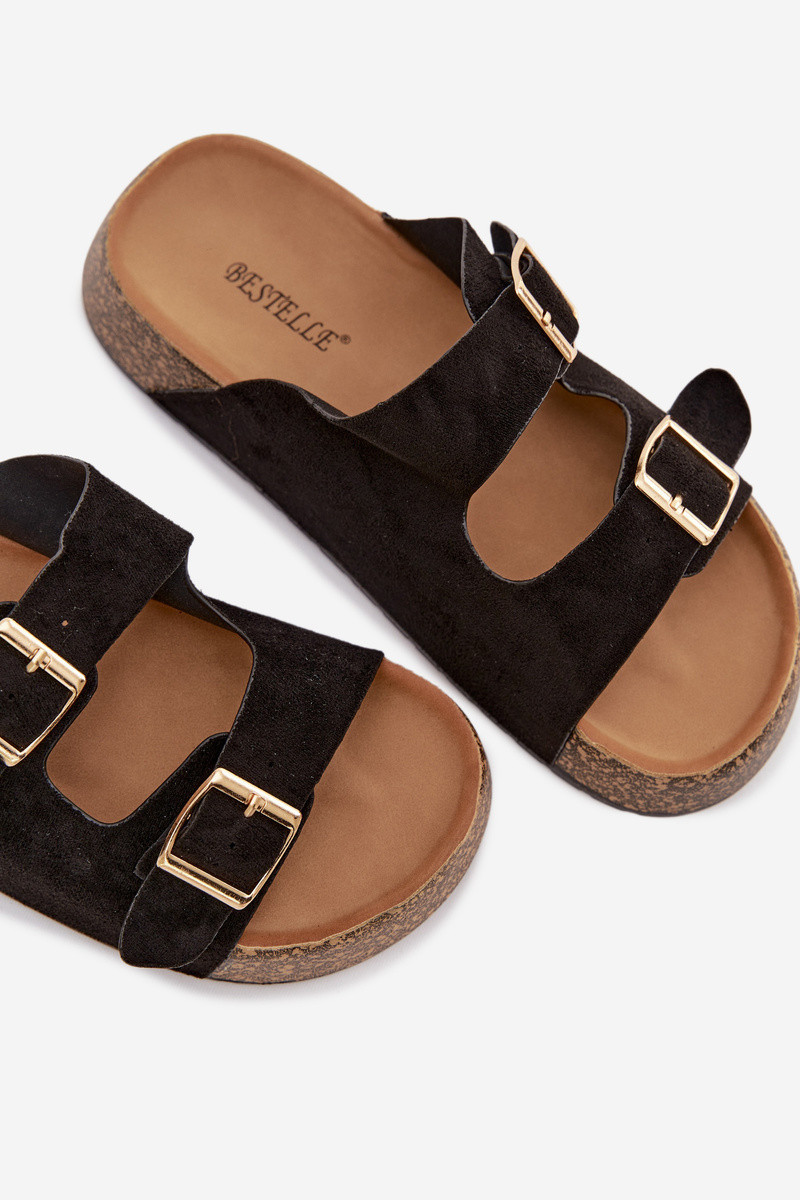 Přidání recenze k Dámské pantofle na korkové platformě se zlatými sponami Černé Tovessa