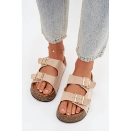 Dámské pantofle na korkové platformě jsou módní a pohodlnou volbou na teplé dny. Vyrobené z eko semiše, vypadají stylově a příjemně se přizpůsobují noze. Dva pásky se zlatými přezkami dodávají celku elegantní charakter a zdůrazňují aktuální trendy. Model se skvěle hodí do letních stylizací, spojující pohodlí s módním vzhledem. Při výběru velikosti se řiďte tabulkou velikostí.