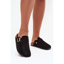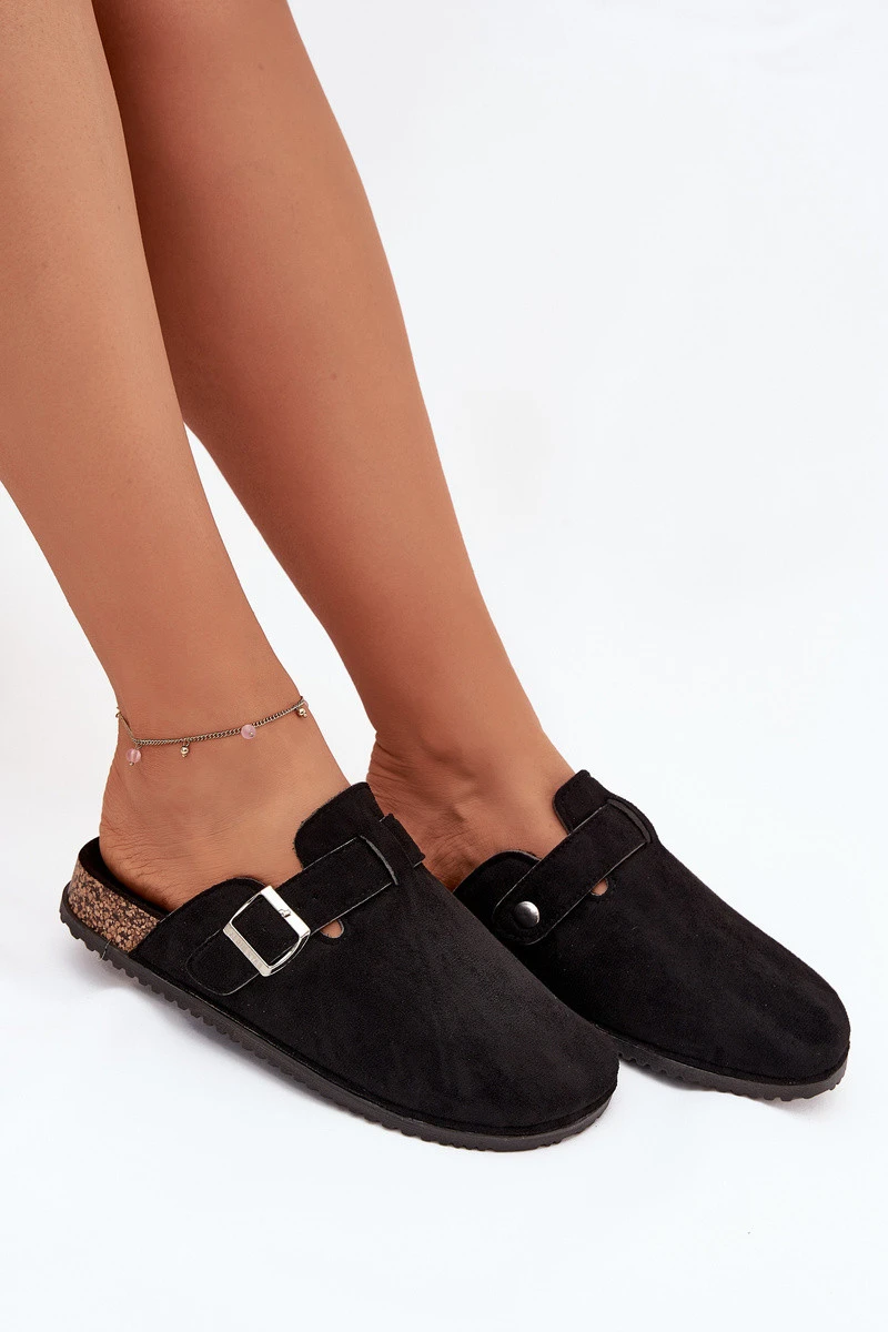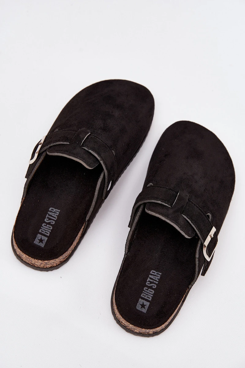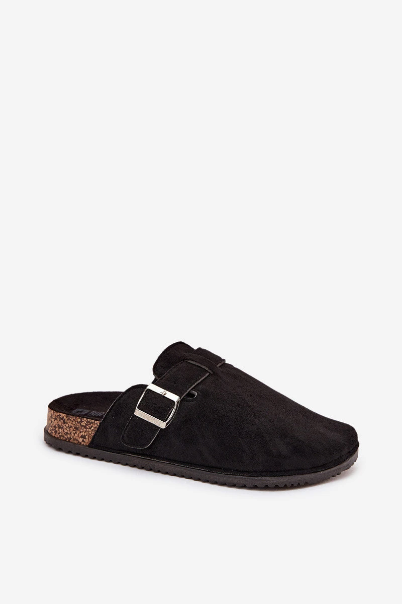 Dámské Pantofle Na Korkové Platformě Stříbrná Spona Big Star SS274736 Černé