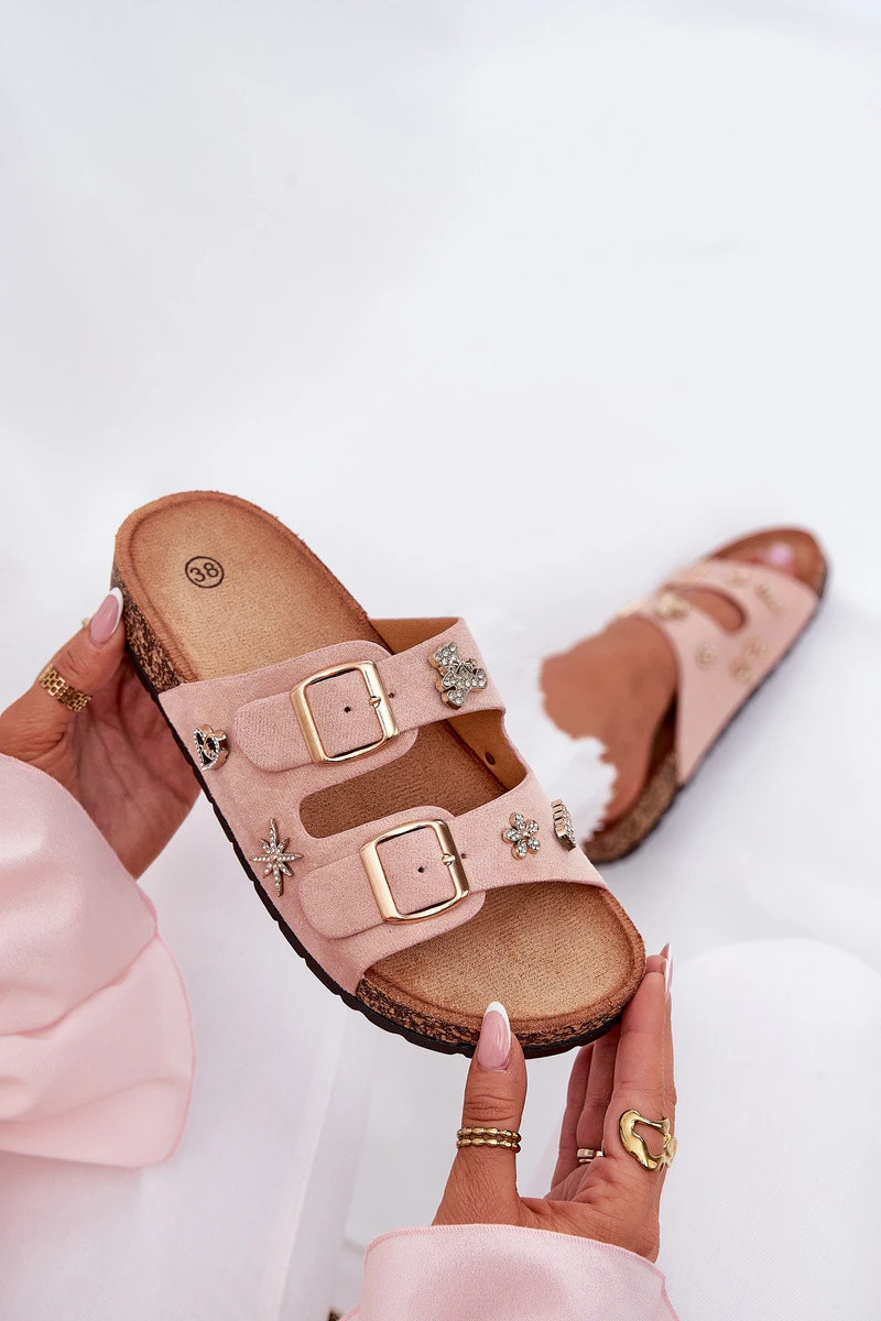 Dámské pantofle na korkové podrážce s a ozdobami světle růžové model 21687398 - Boto