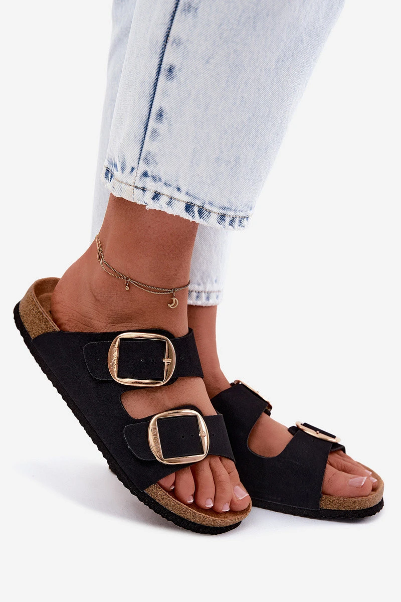 Dámské pantofle od značky Lee Cooper jsou pohodlnou a stylovou volbou na teplé dny. Jejich lehký, letní charakter se skvěle hodí k běžným outfitům, zajišťujíc volnost a módní vzhled. Korková podešev jim dodává přirozený šarm a podtrhuje letní atmosféru, zatímco pásky s velkými zlatými přezkami tvoří výrazný akcent, který přitahuje pozornost. Eko semišové provedení vypadá esteticky a příjemně se přizpůsobuje noze. Profilovaná vložka zvyšuje komfort nošení, takže model je ideální na procházky, výlety či každodenní aktivity. Při výběru velikosti se řiďte tabulkou velikostí.