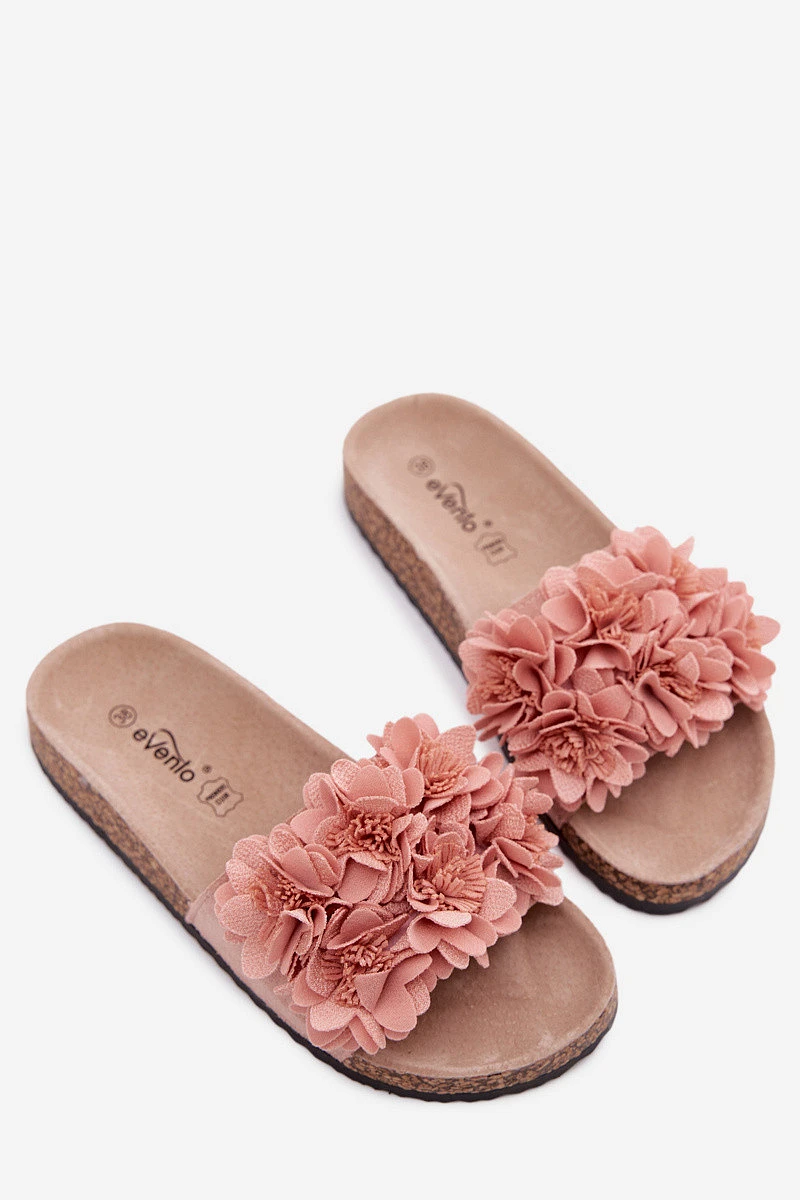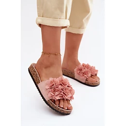 Přidání recenze k Dámské pantofle na korkové podrážce s ozdobnými květinami Růžové Seleneza