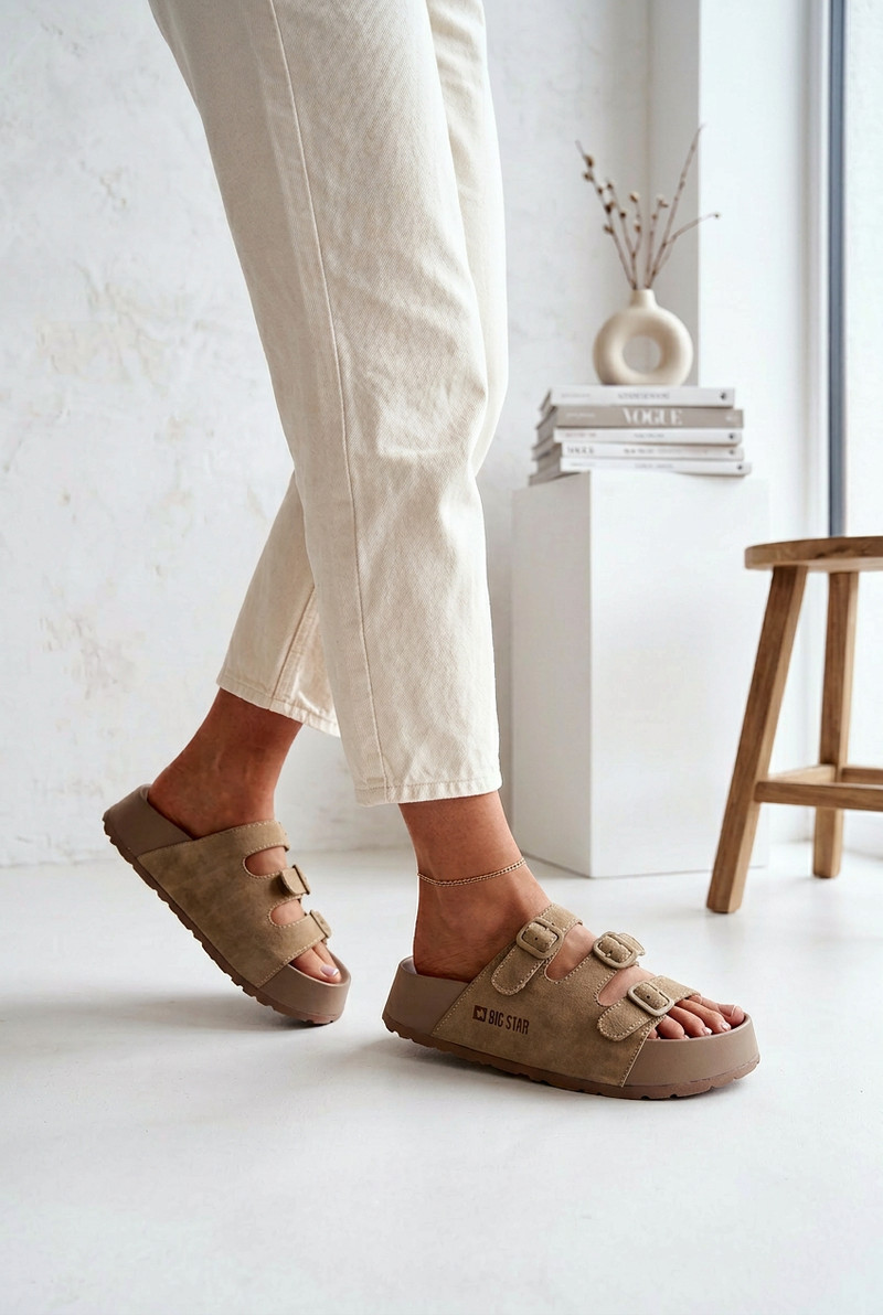 Dámské pantofle na masivní platformě s model 22069656 Big Star Béžové - Big Star Shoes