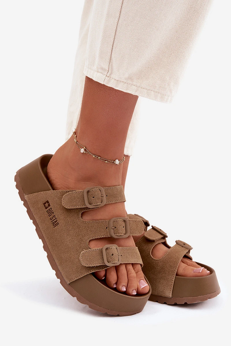 Dámské pantofle na masivní platformě s pásky Big Star TT274530 Camel