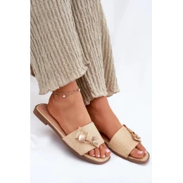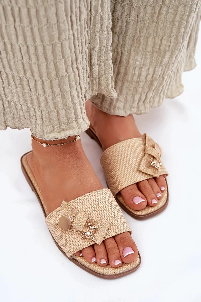 Dámské pantofle na nízkém podpatku s mašlí – béžové