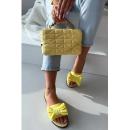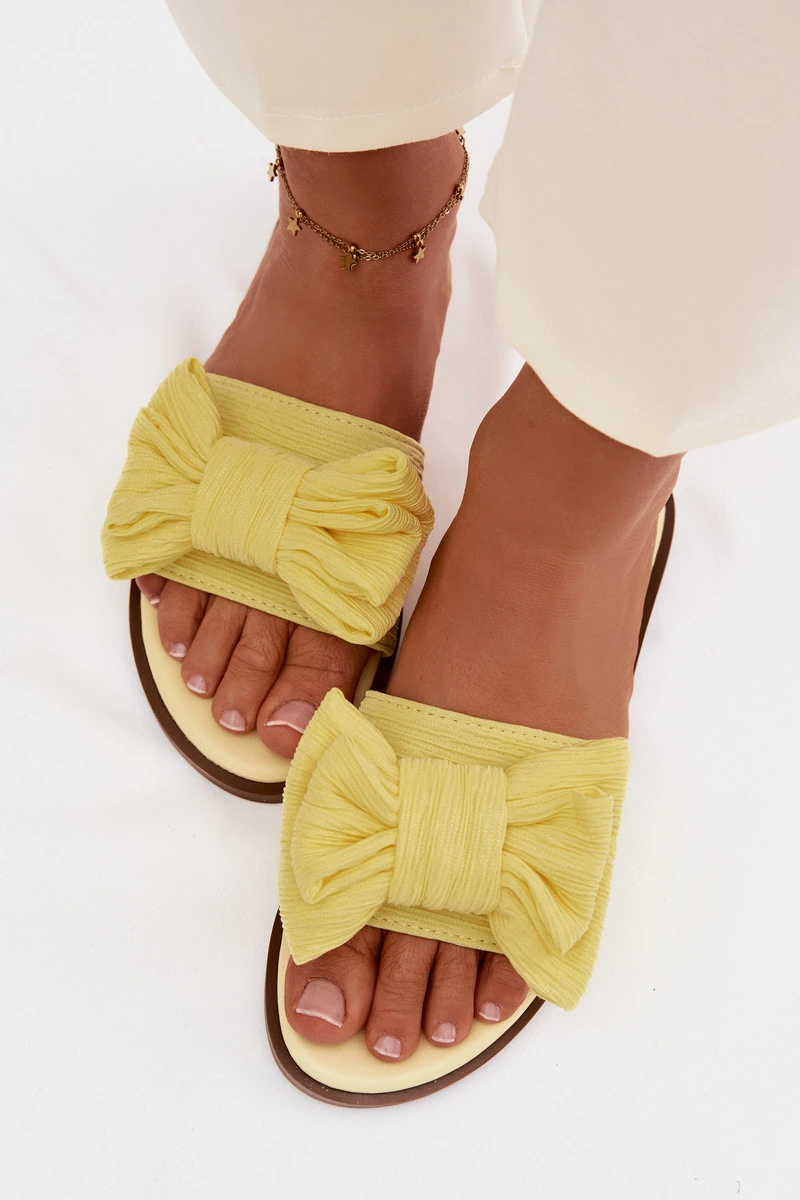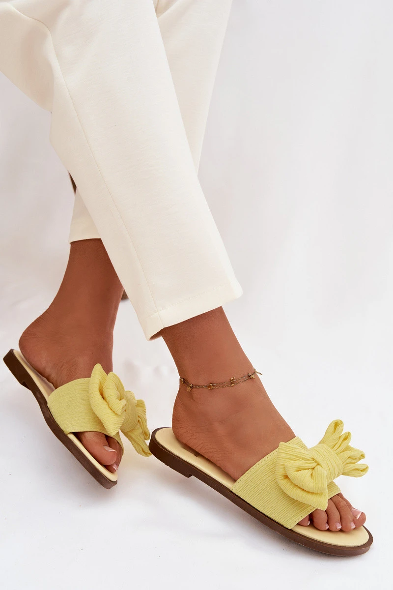 Dámské pantofle na nízkém podpatku s mašlí Žluté Amivelle