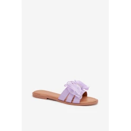 Dámské pantofle na nízkém podpatku s tylovou mašlí – fialové