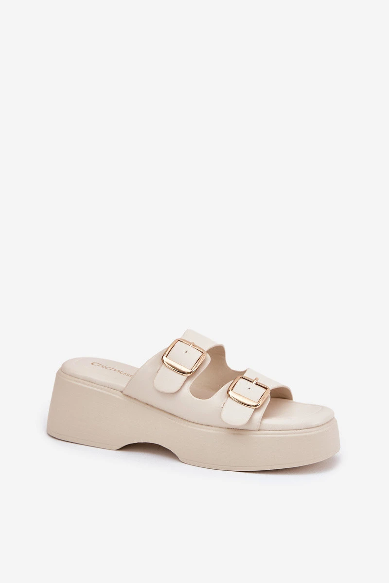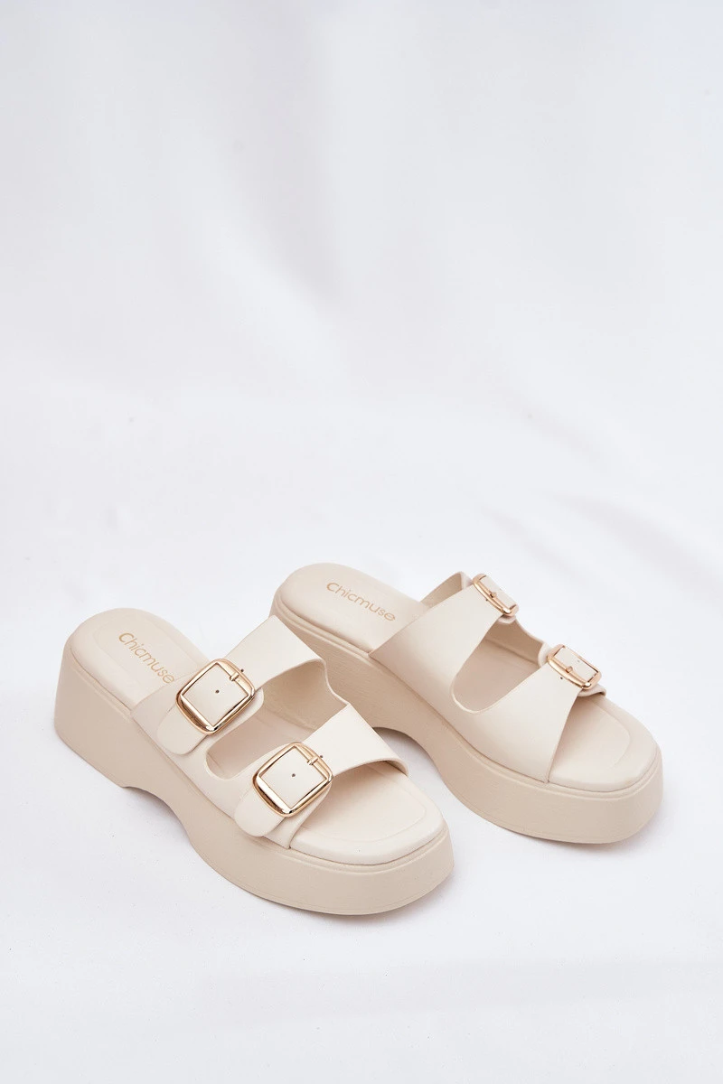 Dámské pantofle na platformě a klínu s přezkami světle béžové model 21697274 - Boto
