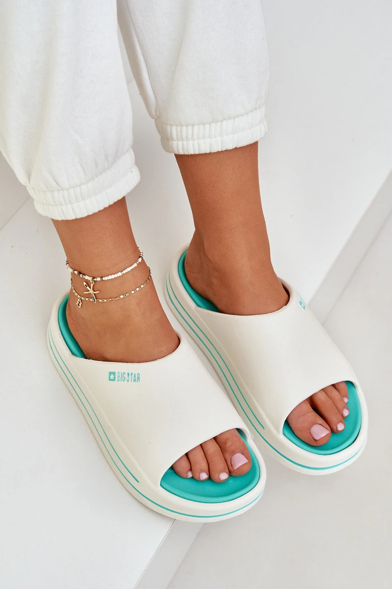 Dámské žabky od značky Big Star vyrobené z měkké a příjemné pěny. Vysoká podrážka přidává pár centimetrů na výšce, což znamená, že nejsou jen pohodlné, ale také ideální na letní dny. Skvěle se hodí jak na pláž, tak do každodenního nošení a ladí s různými ležérními styly, podtrhující volnou povahu letních dní. Při výběru velikosti se řiďte tabulkou velikostí.