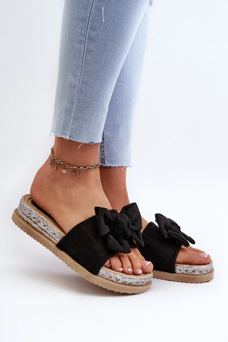 Dámské žabky vyrobené z na dotek příjemného eko semiše. Mašle dodává jemnost a dívčí šarm. Ideální na letní procházky, setkání s přáteli nebo večery. Slaďte je se svým oblíbeným letním stylem! Při výběru velikosti se řiďte tabulkou velikostí.