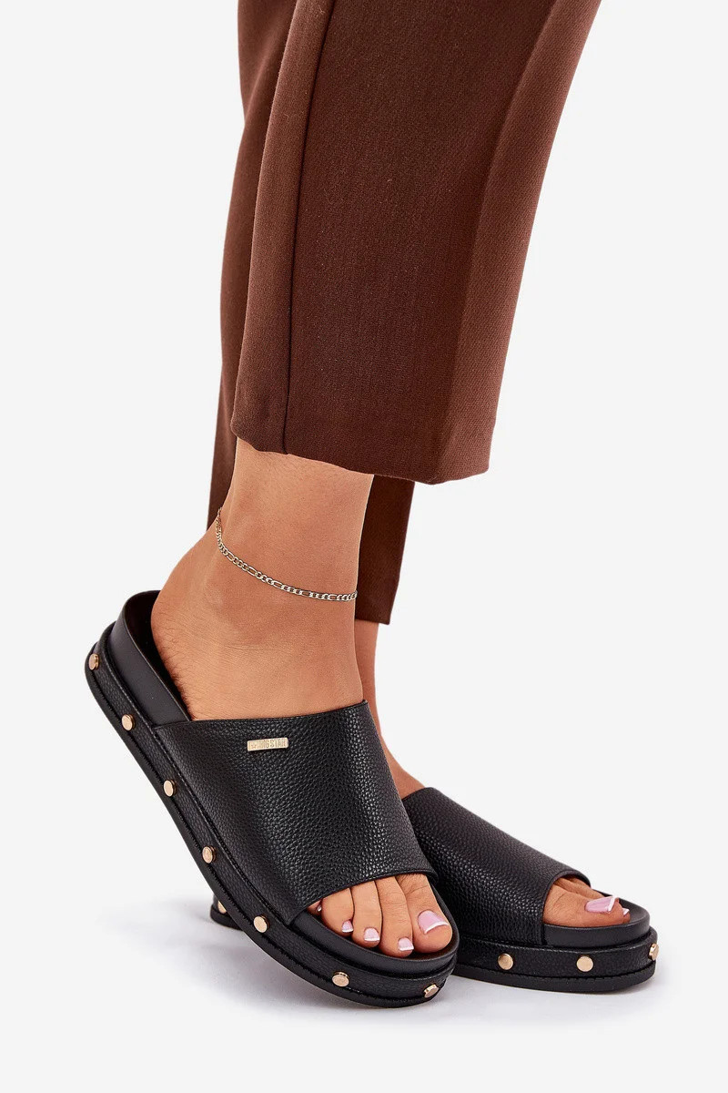 Dámské pantofle na platformě s cvočky Big Star – černé