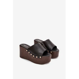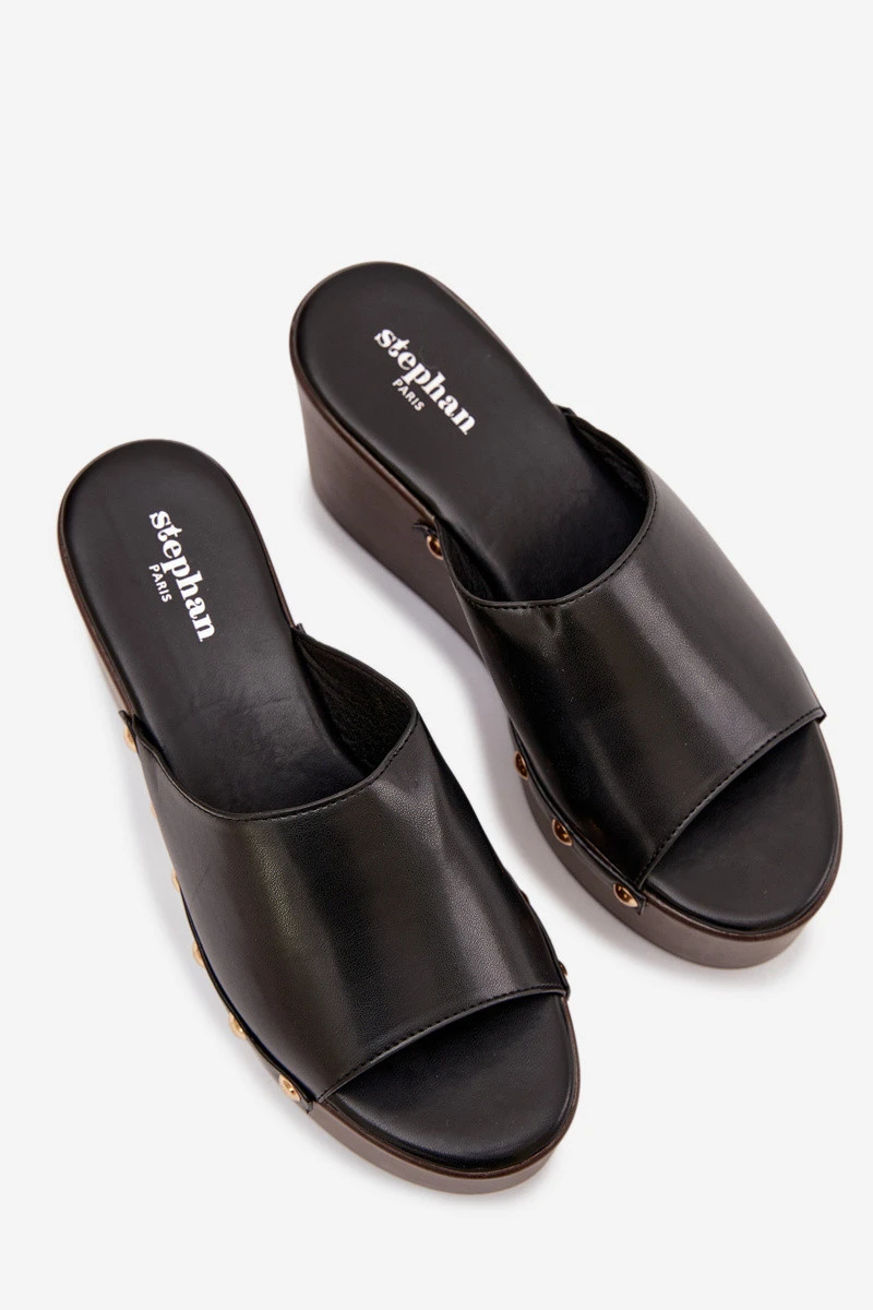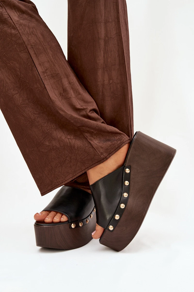 Dámské pantofle na platformě s cvočky černé Mareline
