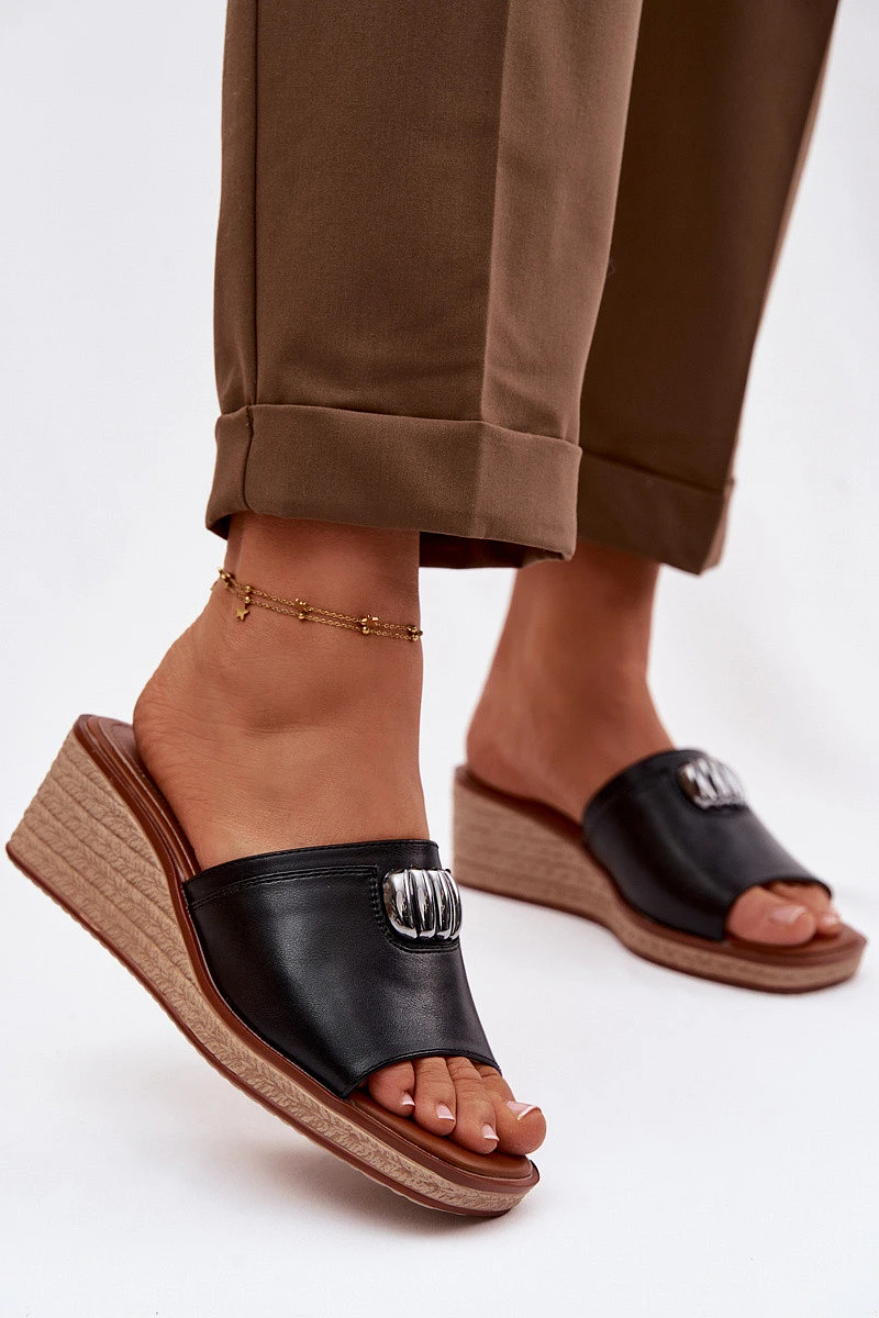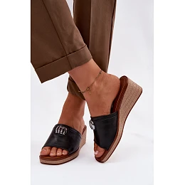 Dámské pantofle na platformě s imitací pletení Sergio Leone KL325 Černé