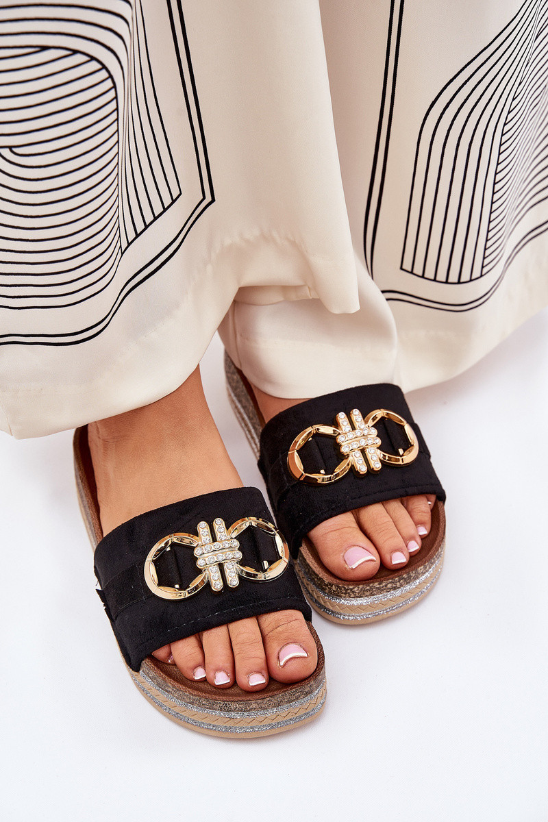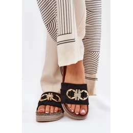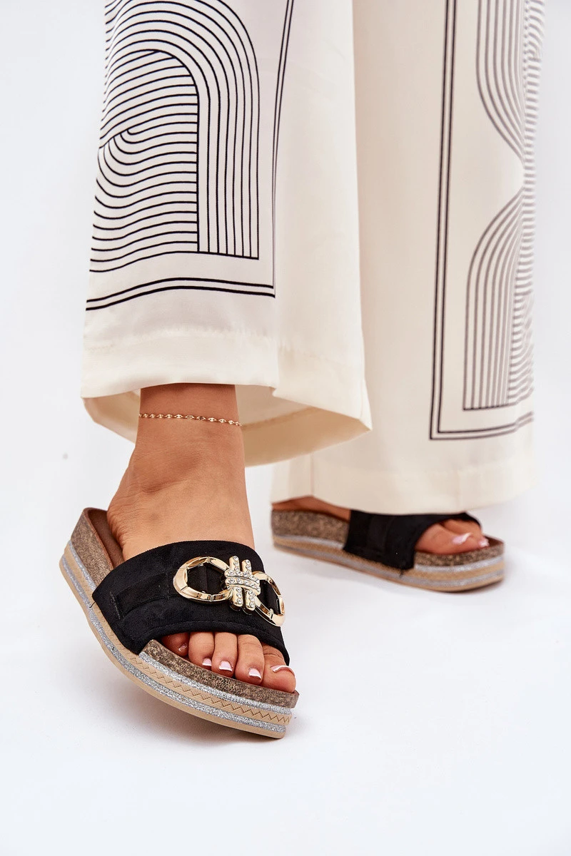 Dámské Pantofle Na Platformě S Leskem A Zlatou Dekorací Černé Rilirea