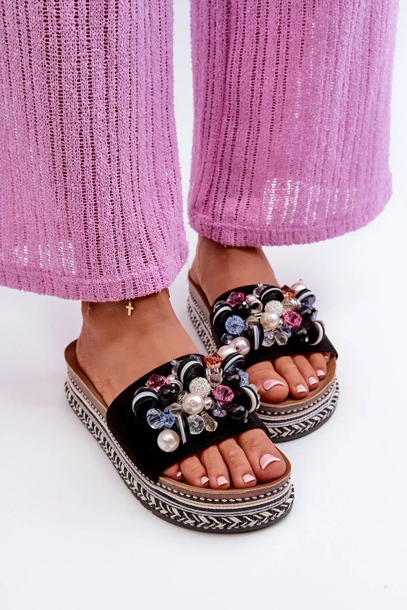 Dámské pantofle na platformě s ozdobami S.Barski černá