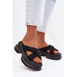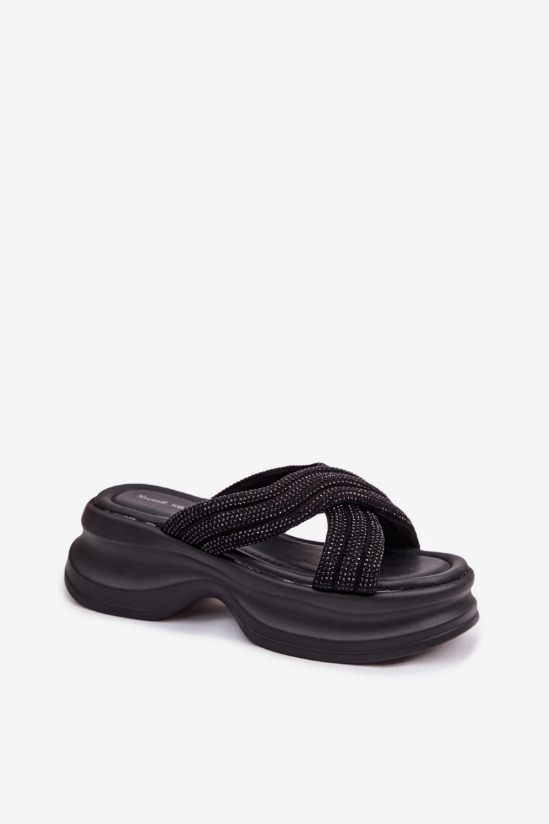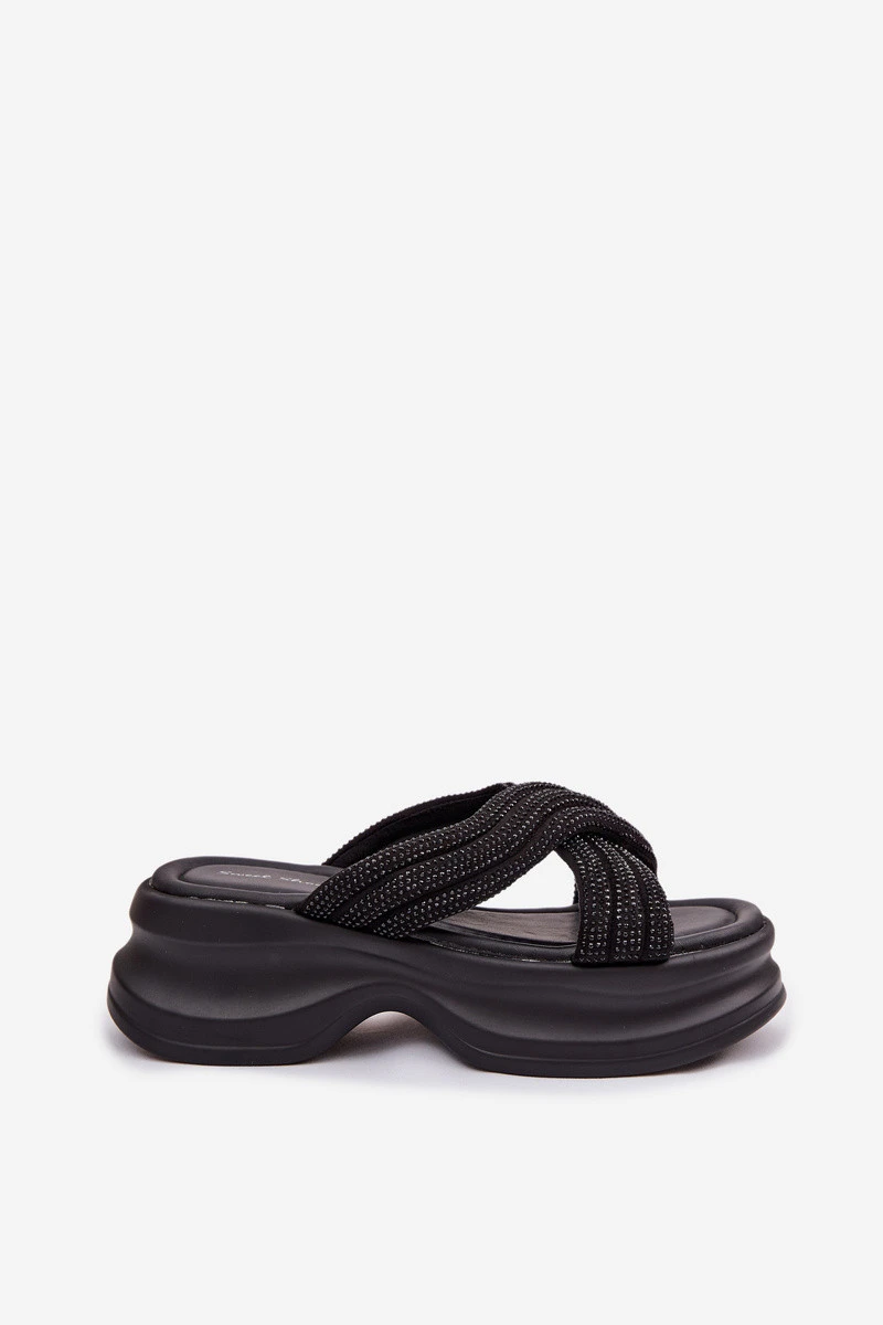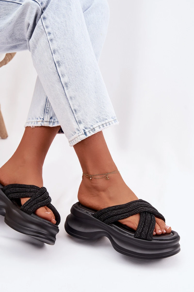dámské pantofle na platformě s pásky Černé model 22037707 - Boto
