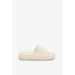 Dámské pantofle vyrobené z pěnového materiálu. Umístěné na platformě, jsou ideální volbou na teplé dny. Pásek s výřezem na boku. Skvělé na pláž, k bazénu a jiné letní výlety, poskytující pohodlí a lehkost po celý den. Při výběru velikosti se řiďte tabulkou velikostí.