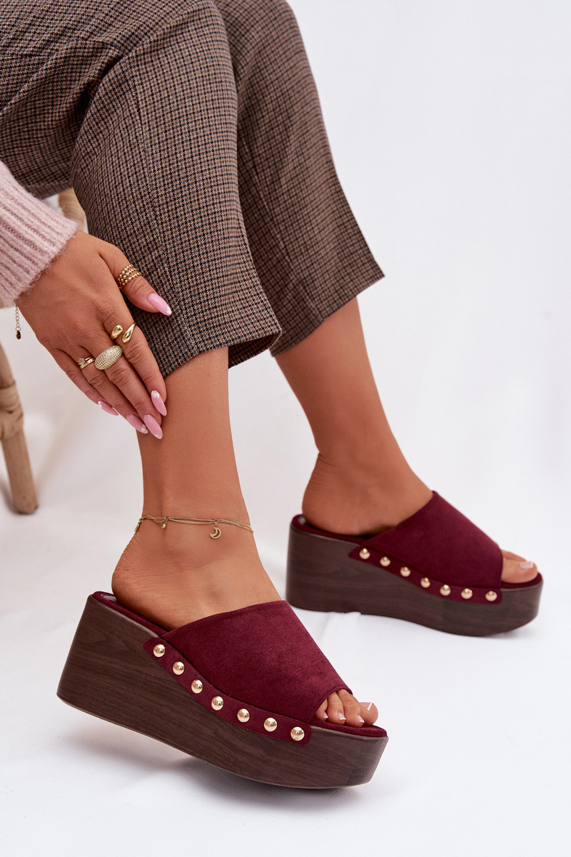 Dámské pantofle na platformě s Zlatými sponami Eko semiš Bordové Helivina