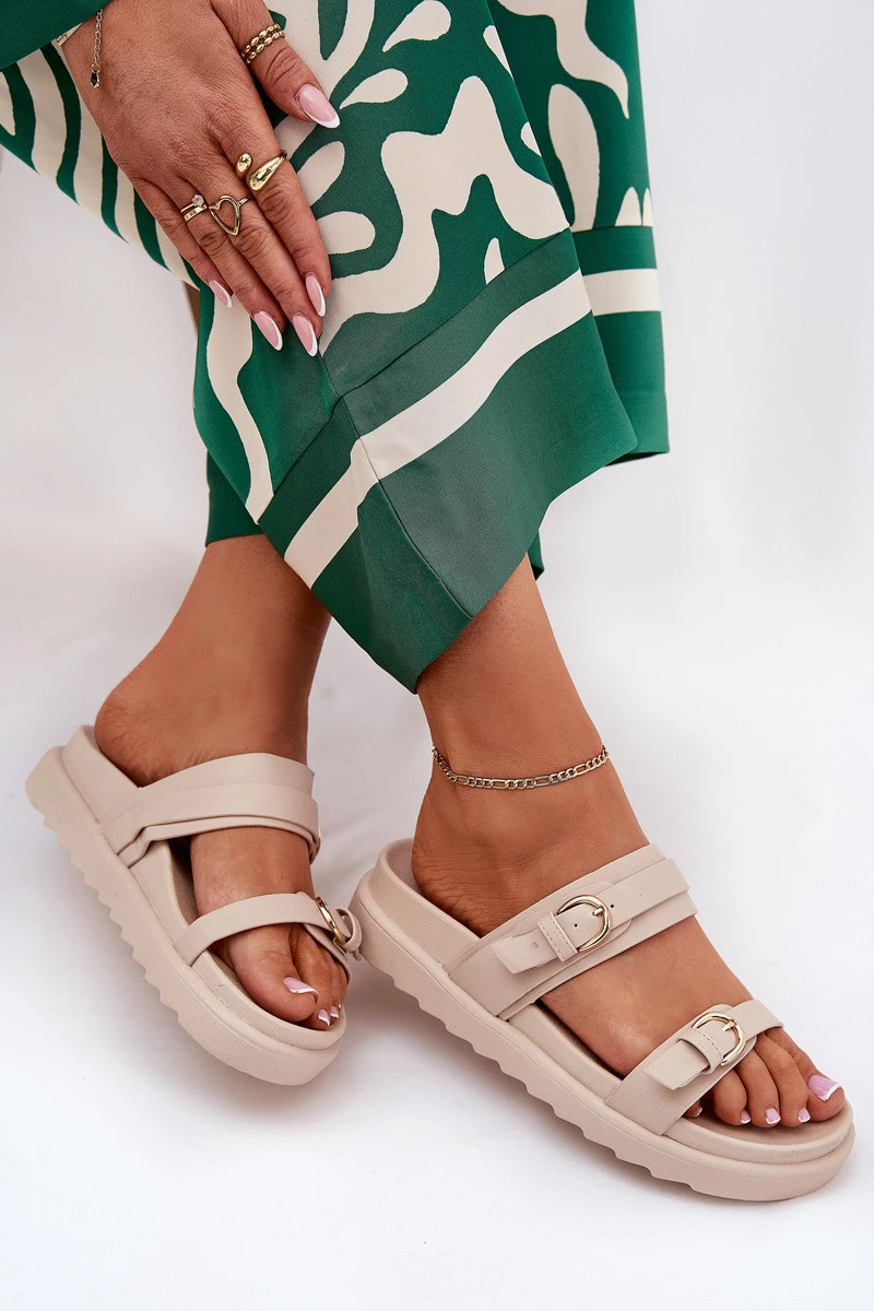 Dámské Pantofle Na Platformě Se Zlatými Béžové model 21687846 - Boto