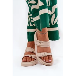 Dámské Pantofle Na Platformě Se Zlatými Sponami Béžové Wernone