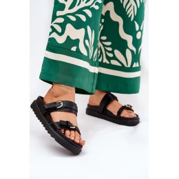 Módní dámské sandály na platformě, které spojují pohodlí s moderním vzhledem. Vpředu jsou dva pásky s přezkami, které dodávají charakter a jemně přitahují pozornost. Platforma zajišťuje jistotu kroku a stabilitu po celý den. Ideální na každodenní nošení, skvěle se hodí jak k šatům, tak k kalhotám, čímž vytvářejí univerzální prvek každého letního outfitu. Při výběru velikosti se řiďte tabulkou velikostí.