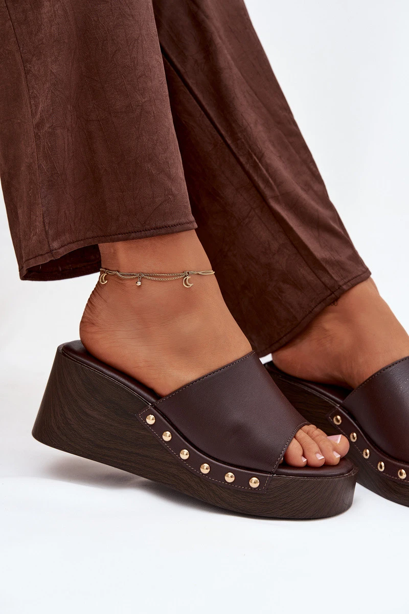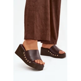 Dámské pantofle na platformě se zlatými sponami hnědé model 21918845 - Boto
