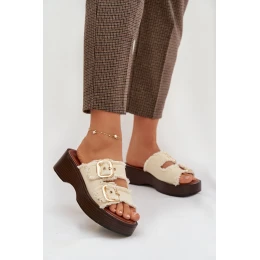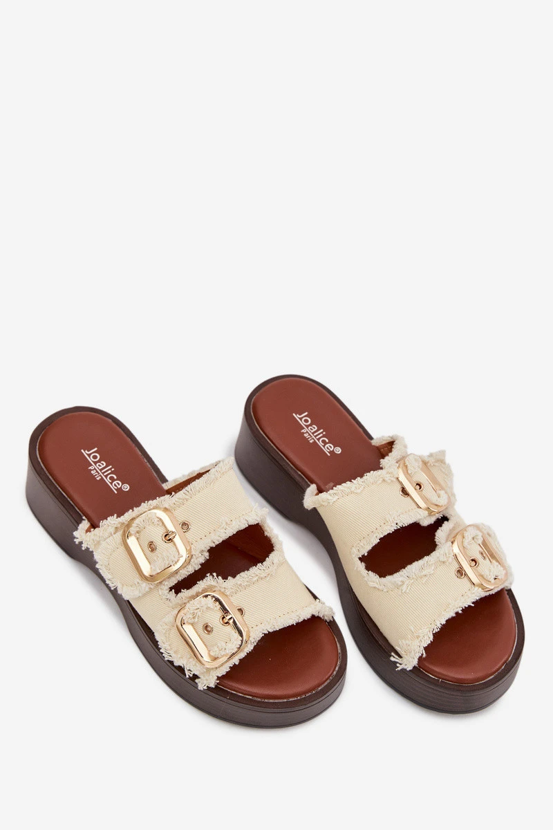 Dámské pantofle na platformě se zlatými sponami světle béžové Renelisse