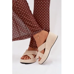 Dámské pantofle na platformě z eko semiše béžové Calorine