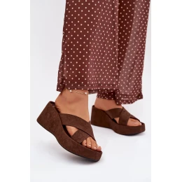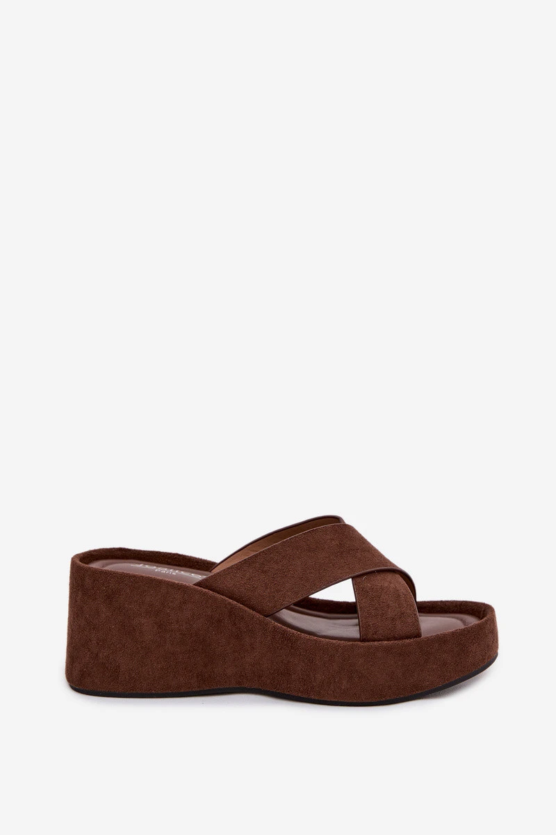 Dámské pantofle na platformě z eko semiše čokoládové model 21919328 - Boto