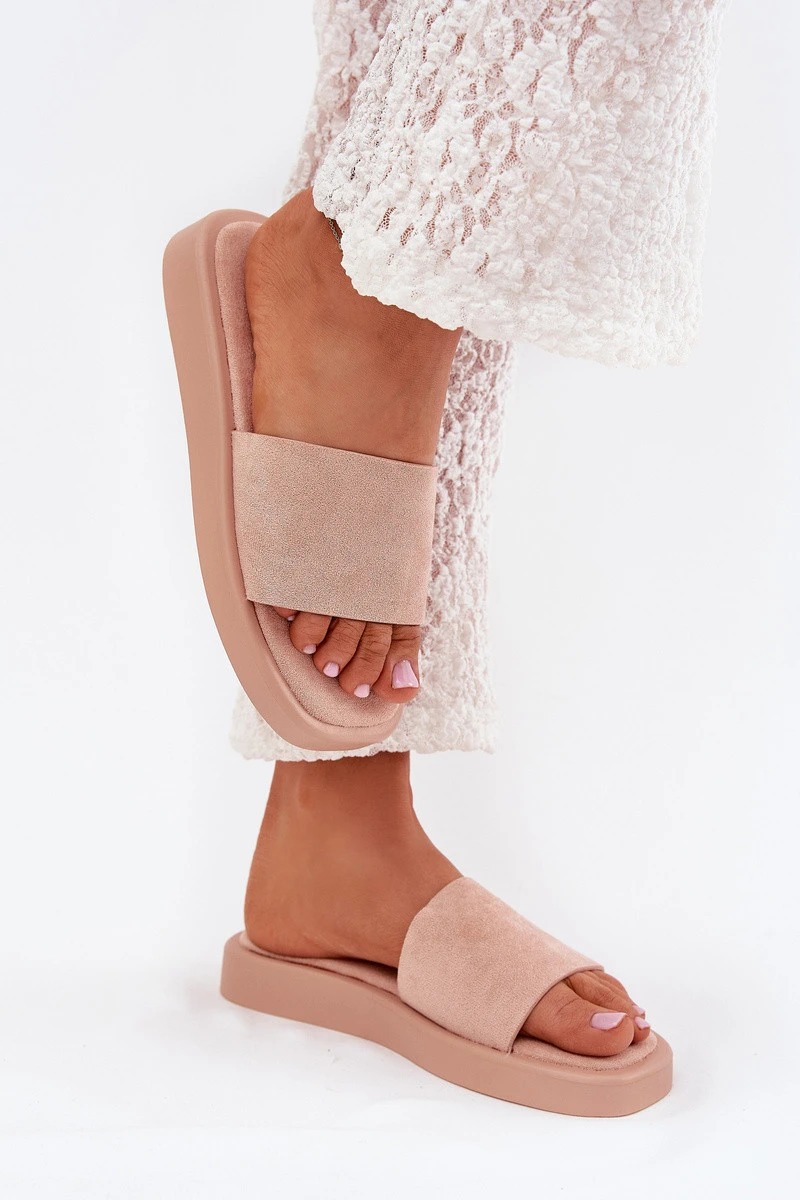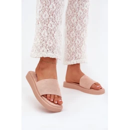 Dámské Pantofle Na Platformě Z Eko Semiše Špinavě Růžové model 21703763 - Boto